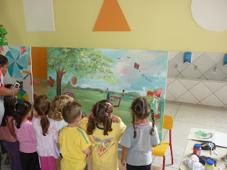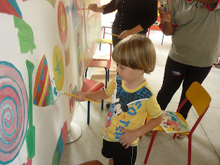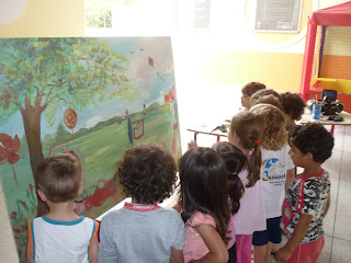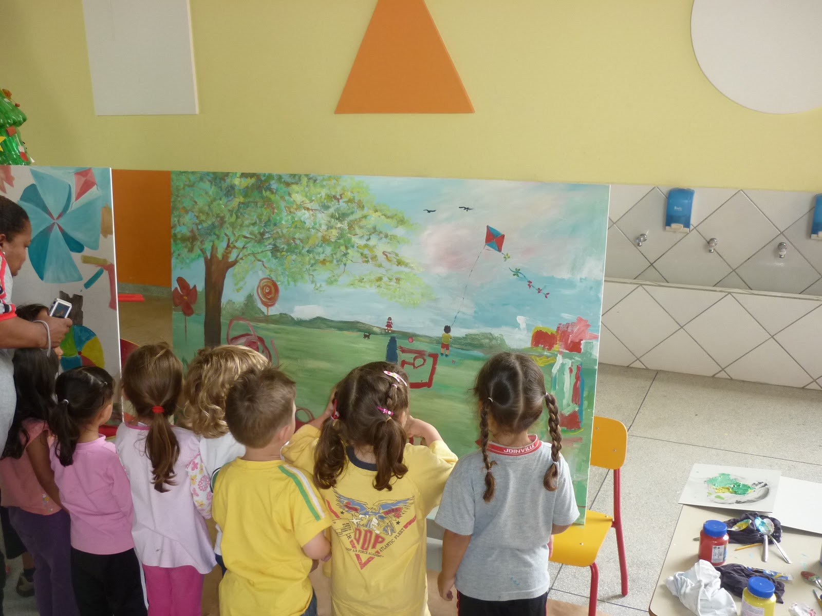 As crianças ajudaram a pintar a tela da artista plástica, interagiram para poder expor esta tela no nosso Cei.